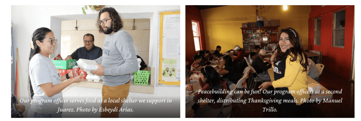 As Juarez continues receiving thousands of migrants, city shelters are at full capacity and struggle to meet the basic needs of displaced people waiting for their turn to cross. More than 10,000 migrants are waiting in Juarez, making the city the most populated center along the US Mexico border. As Mexico accelerates deportations, people stuck at the border experience increased anxiety and stress as they wait for any kind of answer, far from home and loved ones. Thanks to our community of peacebuilders, our Thanksgiving meal gave displaced people a respite from their troubles as one meal united us around the table, reigniting hope.