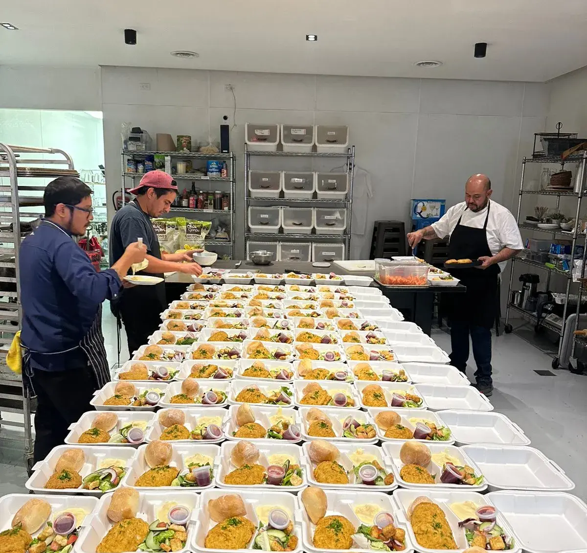 Food is a language of connection. Sharing a meal gathers people around a table, reaffirming that we are alive and present in that moment. Eating together, we journey through past memories as we create new ones, stamped indelibly by experiencing a particular meal. The meal you brought included delicious chicken breast stuffed with cheese and ham, mashed potatoes with parmesan cheese, seasoned salad, and pasta. We bought the meals and accompanying cans of soda from a local restaurant to support neighborhood businesses near the shelters with which we partner.